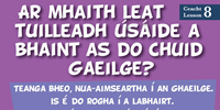 Tá na póstaeir seo, do Cheacht 5, Cheacht 7 agus Cheacht 8, le fáil i mbosca an mhúinteora.